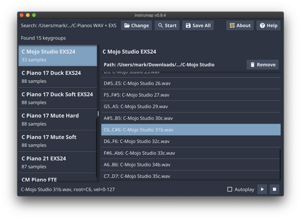 Note: Instrumap v0.9 is an early release to help me gauge interest. The price is likely to increase after v1.0. It works well but there may be occasional bugs (but please let me know if you find any).